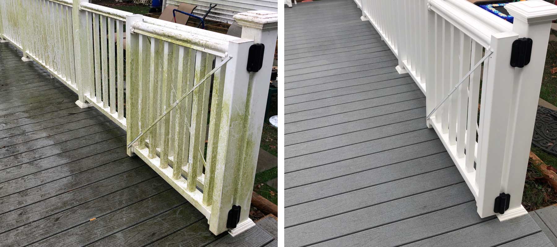Our proven deck cleaning methods are just as effective on your wood or vinyl fence as well! The cleaning detergents are specially designed to gently eliminate algae, mold, and bacteria growth leaving your fence looking years newer!