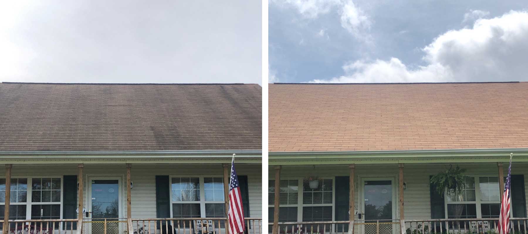 We use the same roof cleaning method prescribed by the Asphalt Roofing Manufacturers Association to safely and gently clean your roof. We use a special blend of cleaning detergents that are designed to work down to the root of the problem – eliminating algae and mold spores before they spread.